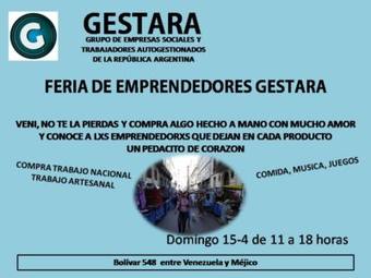 Bajo el lema «Comprá trabajo nacional, trabajo artesanal», el Grupo de Empresas Sociales y Trabajadores Autogestionados de la República Argentina (GESTARA) realizará este domingo una nueva feria.