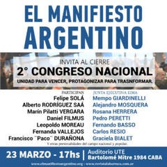 Nacido de la mano de Mempo Giardinelli, uno de los referentes intelectuales más importantes de nuestro país, El Manifiesto Argentino “es un colectivo integrado por ciudadanos y ciudadanas de toda la república, y todas las profesiones y actividades, que ha instalado ya en la agenda política de la República Argentina algunas ideas hoy fundamentales para la vida nacional».