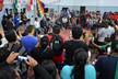 Tras ello los dirigentes, el primer mandatario y sus funcionarios se sentaron frente a la gente y conversaron sobre el duro momento que vive Bolivia a raíz del golpe de Estado perpetrado por militares y policías de ese país.