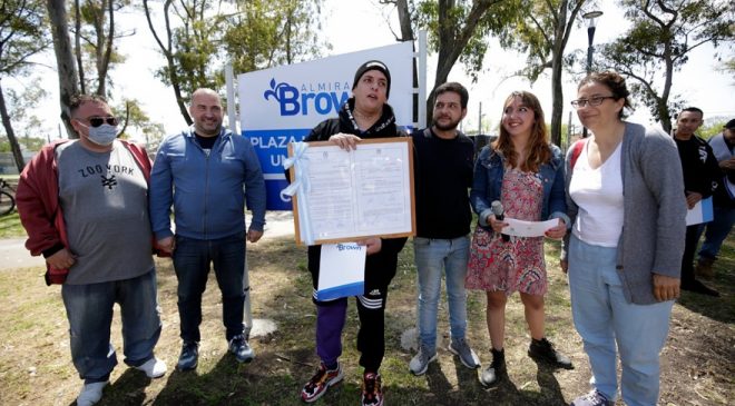 “Ponerle este nombre a la plaza es un reconocimiento a muchos jóvenes que crean arte, siendo fiel reflejo de parte de la cultura joven de Brown que orgullosamente comenzó en un potrero y que hoy trasciende la escena nacional, siendo reconocidos a nivel mundial”, sostuvo Nicolás Jatwuschenko.