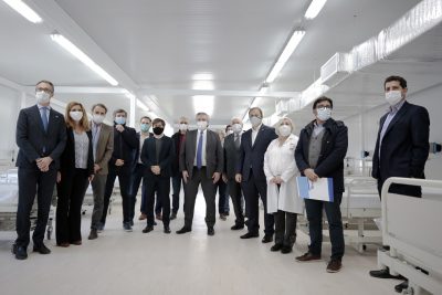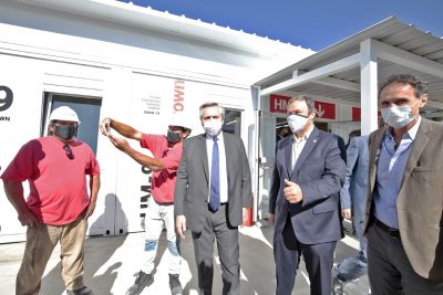 Las autoridades, entre las que se destacó el ministro de Obras Públicas de la Nación Gabriel Katopodis, su par de Salud Ginés González García y el ministro del Interior Eduardo Wado de Pedro, junto al secretario de Comunicación y Prensa de la Presidencia, Juan Pablo Biondi, realizaron una recorrida por el flamante nosocomio de 1000 metros cuadrados que fue montado en apenas 22 días en el marco de la emergencia sanitaria por la pandemia de Coronavirus. De la actividades participó también el diputado nacional Máximo Kirchner.