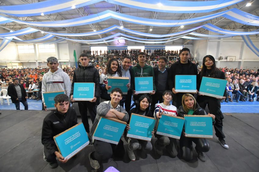 El intendente Andrés Watson y el gobernador Axel Kicillof otorgaron dispositivos portátiles tanto a alumnos como alumnas de 38 Secundarias del distrito en el Polideportivo Municipal “La Patriada” con la iniciativa “Conectar Igualdad Bonaerense” como contexto.