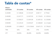 Puntualmente, los préstamos que ofrece el organismo que tiene como titular a Emilio Basavilbaso son a pagar entre los dos y los cinco años, con un monto mínimo de 5 mil pesos y un máximo de $200.000. En tanto, poseen el sistema de amortización francés. “Costo Financiero Total (CFT) efectivo anual: 24 cuotas, 50,85%; 36 cuotas, 48,28%; 48 cuotas, 46,29%; 60 cuotas, 44,68%.”
