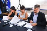 El titular de la ANSES, Alejandro Vanoli, y sus pares de la AFIP, Mercedes Marcó del Pont y del PAMI, Luana Volnovich, firmaron un convenio para impulsar un trabajo conjunto entre los organismos que permita extender el uso de la tarjeta de débito entre los sectores vulnerados.