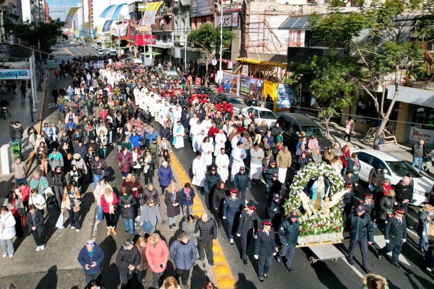 Seguidamente, encabezaron la tradicional procesión por las calles de Avellaneda para culminar en la Santa Misa frente a la Catedral en honor a Nuestra Señora de la Asunción, patrona de la ciudad.