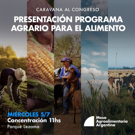 Trabajadores del campo organizados en cooperativas, en agricultura familiar y en el movimiento campesino e indígena Mesa Agroalimentaria Argentina (MAA), realizarán el miércoles próximo una caravana hacia el Congreso para presentar públicamente el «Programa Agrario para el Alimento», que impulsa una serie de políticas públicas concretas para dar soluciones a los «problemas del alimento, fruto de un modelo agropecuario concentrado y especulador».