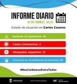En cuanto a la evolución de los 2 casos confirmados, el jefe comunal afirmó que se encuentran en tratamiento recibiendo los cuidados previstos. Al mismo tiempo puso en conocimiento que se está realizando el seguimiento de 46 casos sospechosos que hasta el momento no han sido confirmados.