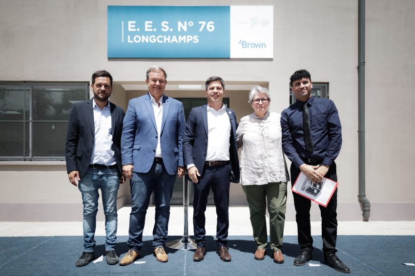 El gobernador de la Provincia de Buenos Aires, Axel Kicillof, inauguró junto a Mariano Cascallares y al intendente interino de Almirante Brown, Juan Fabiani, el Jardín de Infantes N° 967 y el nuevo edificio de la Escuela Secundaria N° 76 de Longchamps. Ambos establecimientos educativos se suman para ampliar la matrícula educativa en el distrito.