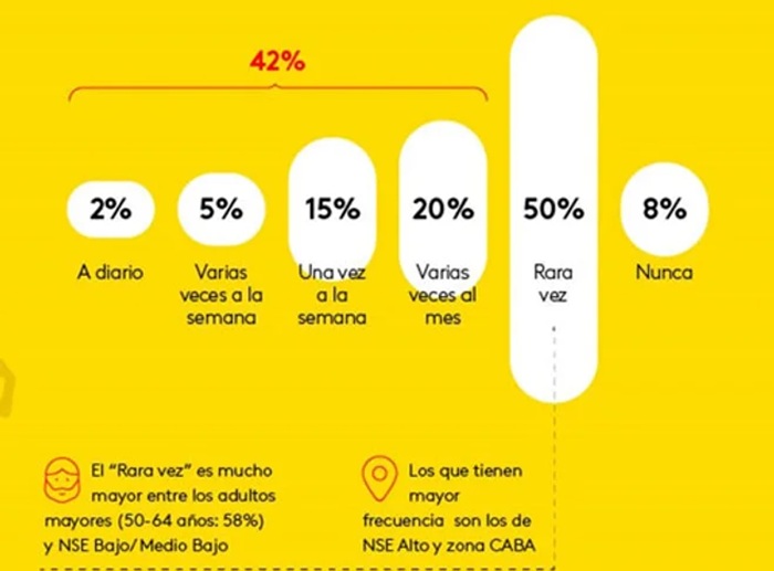 Así se desprende de una encuesta nacional realizada por la división Insights de Kantar, que reveló que el 76% redujo la frecuencia de esas salidas, especialmente entre los sectores de menores ingresos, donde la caída alcanza el 85%.