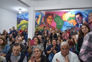 Los presentes apoyaron con aplausos y cánticos lo esgrimido por el líder del PJ local. Así, llenaron de energía las paredes del flamante hogar peronista y colmaron de significado el imponente mural en honor a Felipe Varela y la patria Argentina, jurando «defenderla hasta morir, antes que verla humillada».
