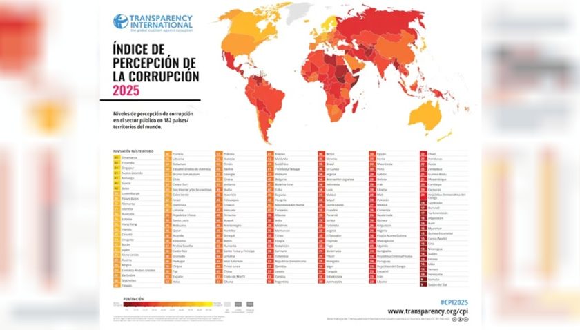 Se trata del Índice de Percepción de la Corrupción (IPC) que elabora todos los años el movimiento global Transparencia Internacional, en el cual nuestro país obtuvo una calificación de 36 puntos sobre 100 teniendo en cuenta el 2025.