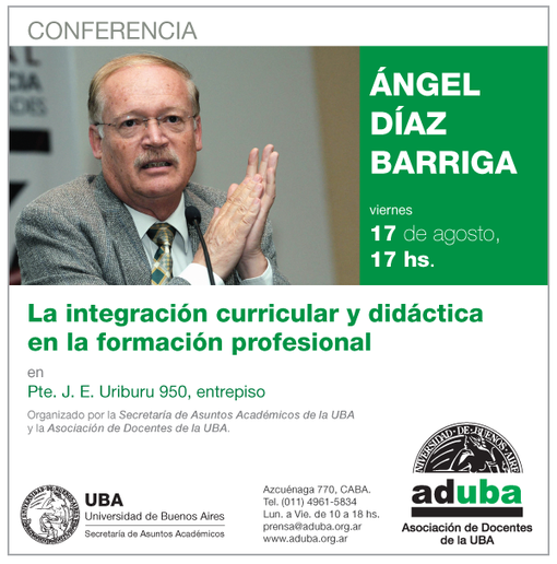 El Dr. Ángel Díaz Barriga brindará la conferencia titulada «La integración curricular y didáctica en la formación profesional», organizada por ADUBA en conjunto con la Secretaria de Asuntos Académicos de la UBA.