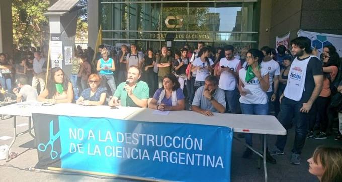 Lo investigadores y científicos llevan desde esta mañana una serie de manifestaciones en contra del feroz recorte en el Consejo Nacional de Investigaciones Científicas y Técnicas (Conicet).