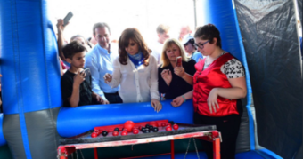 Una Cristina sonriente y relajada, compartió con cientos de chicos y sus familias actividades recreativas, artísticas y deportivas, se dio tiempo para disfrutar de la kermese y presenció los juegos que los niños con discapacidad realizaron en los peloteros.