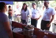 Durante la recorrida, el ministro y la intendenta saludaron, agradecieron y conversaron con distintos actores que participan de la entrega: trabajadores y trabajadoras del Municipio, de la Secretaría de Desarrollo Social y del Banco Provincia, feriantes del mercado itinerante, personas voluntarias y personas beneficiarias.