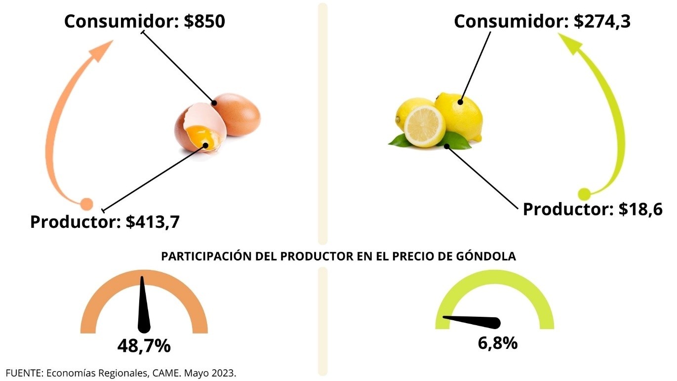 En promedio, la participación del productor explicó el 24,3% de los precios de venta final. La mayor participación la tuvieron los productores de huevo (48,7%), mientras que la menor fue para los de limón (6,8%).