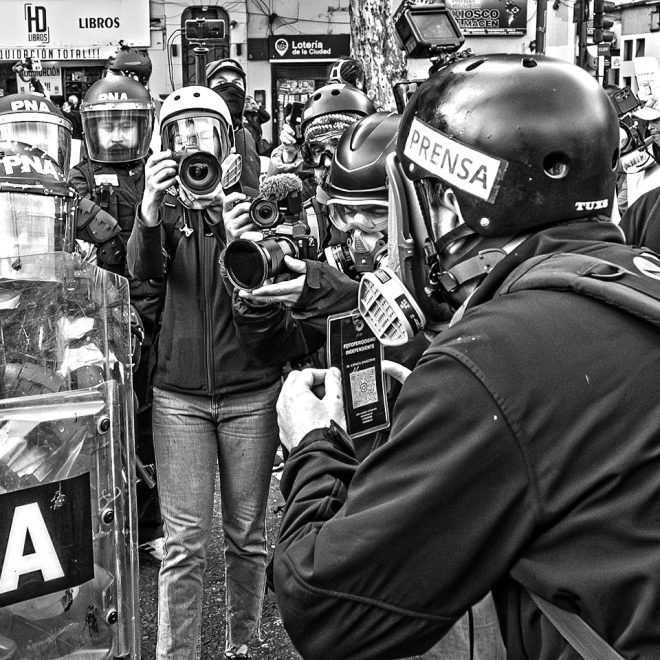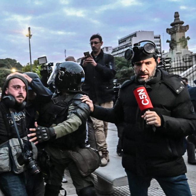 El péndulo comunicacional se fue corriendo – y se va corriendo cada día más- desde un progresismo políticamente encorsetado a un sálvese quién pueda, donde todos queremos ser el que tire la granada más fuerte. Pero el problema es que la violencia traspasó las pantallas e inundó las calles. Los que antes nos referenciamos en el símbolo de Rodolfo Walsh pensando: “Si él se la jugó en ese contexto, ¿cómo no voy hacerlo yo?” nos despertamos un día con las pantallas de C5N, TN o Crónica mostrando fotoreporteros queridos (esos seres indispensables a los que siempre les mangueamos alguna foto sin pagarles), productoras generosas (esas magníficas periodistas con agendas prodigiosas a las que siempre le pedimos algún favor), siendo brutalmente reprimidos, con los rostros colorados llenos de lágrimas por el gas lacrimógeno, con la cabeza apretada contra la vereda de la Plaza del Congreso por alguna rodilla gruesa e insensible del policía o gendarme de turno. ¿Cómo llegamos a eso? ¿Cómo pudimos llegar a eso?