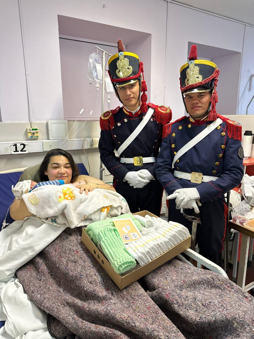 La entrega estuvo a cargo de dos integrantes del Regimiento de Granaderos a Caballo «General San Martín», Daniel Suárez y Brian Grudzinski. En primer lugar, visitaron la sala de maternidad del Hospital Dr. Arturo Oñativia, donde se encontraba Débora Rodríguez, vecina de Claypole, quien dio a luz a Juan Ignacio el 24 de agosto a las 18:24. El bebé nació por parto natural, pesó 3 kilos y midió 47 centímetros.