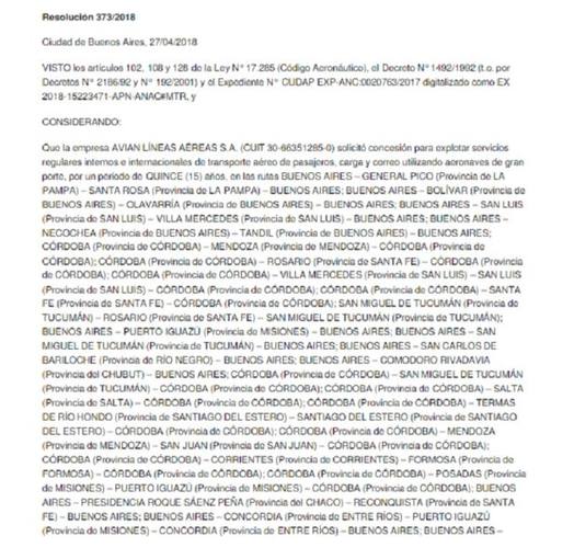 Así las cosas, la cartera conducida por Guillermo Dietrich le dio el visto bueno a Avianca para que vuele desde Buenos Aires a Bolívar, Bariloche, General Pico, Olavarría, San Miguel de Tucumán, Santa Rosa, Córdoba y Tandil, entre otros destinos.