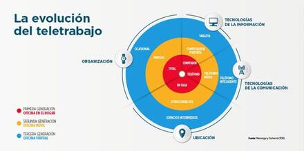 Luego se pasó al concepto de “oficina móvil”, ya que los teléfonos celulares, laptops y tabletas permitieron que el teletrabajo no tenga que ser exclusivamente desde el hogar, sino desde cualquier lugar donde haya una conexión a internet o a una red de datos. La última etapa de esta evolución es la “oficina virtual”, que expande el concepto anterior con la aparición de los teléfonos inteligentes y la capacidad de tener información en la nube. Hoy en día, todo lo que necesitamos para teletrabajar entra en la palma de la mano.