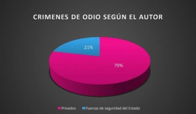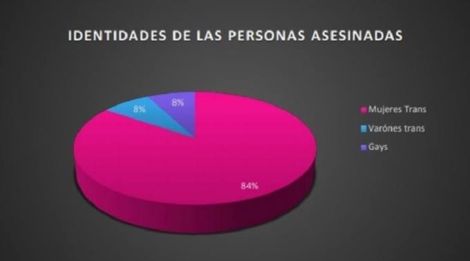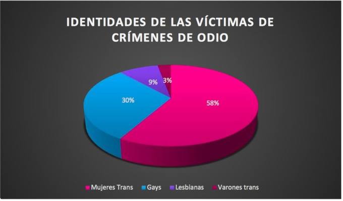 El informe puntualiza en la violencia que sufre la población trans (travestis, transexuales y transgénero), que es la identidad más violentada con el 61% de los casos registrados (58% mujeres trans y 3% varones trans). En segundo lugar, con el 30%, se encuentran los varones gays y con el 9 % de los casos le siguen las lesbianas.