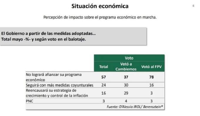El dato relevante es que entre los votantes de Cambiemos, el 58% la ve como inadecuada. Por su parte, los votantes del Frente para la Victoria (FpV) la consideran como una mala salida casi en su totalidad (92%).