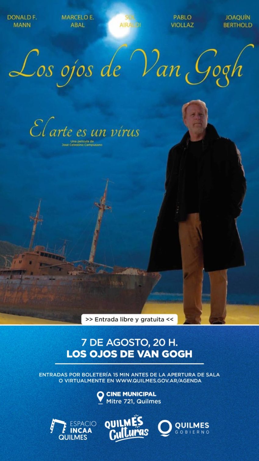 El Municipio de Quilmes invita a las y los vecinos al estreno de «Los Ojos de Van Gogh», la última película del director de cine quilmeño, José Campusano, que se llevará a cabo este jueves 7 de agosto desde las 20, en el Teatro Municipal de Quilmes (Mitre 721), con entrada libre y gratuita.