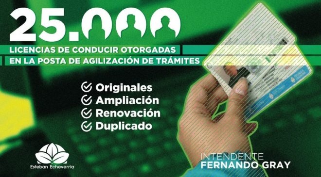 Desde enero de este año, con la instalación de la posta de agilización de trámites localizada en la Plaza Mitre (Monte Grande), el Municipio de Esteban Echeverría realizó más de 19.000 Licencias Nacionales de Conducir para las vecinas y los vecinos del distrito.