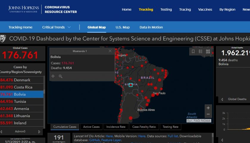 Bolivia registra desde el comienzo de la pandemia 176.761 casos confirmados de coronavirus y 9.454 muertes.