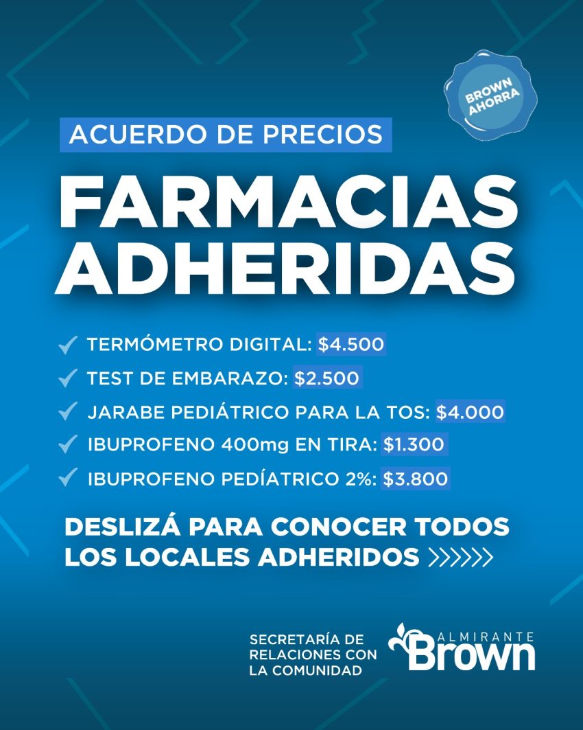 «En Almirante Brown trabajamos siempre para cuidar el bolsillo de nuestras vecinas y vecinos, por eso además de renovar por una semana más el acuerdo con un frigorífico regional, sumamos un nuevo acuerdo con farmacias para garantizar productos importantes a precios razonables», destacó el intendente Mariano Cascallares.