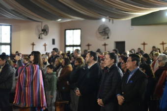La extensa jornada del domingo, junto a los vecinos de 9 de Abril, comenzó con una misa ofrecida en la Capilla San Francisco, junto al padre Roque Villano. Asimismo, y en el marco de la celebración por el Día del Inmigrante, Gray entregó un subsidio a la institución «Los Hijos Dispersos de Kaakupé», destinado a trabajos de refacción, acompañado por el Embajador de Paraguay, Julio César Vera Cáseres, a quién le otorgó un decreto por visita ilustre.