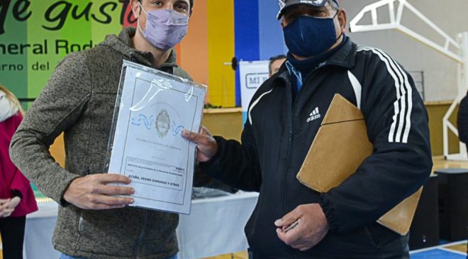 Gral. Rodríguez: El Intendente entregó escrituras sociales en el Polideportivo municipal