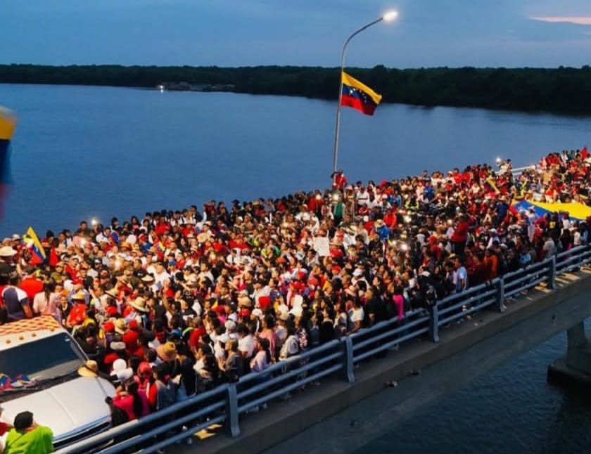 “¡Aquí la venezolanidad donde nace la patria se moviliza para enviar un mensaje al mundo! Desde la frontera, exigimos la libertad del presidente Nicolás Maduro Moro, de nuestra primera combatiente Cilia Flores de Maduro”, exclamó el mandatario regional.