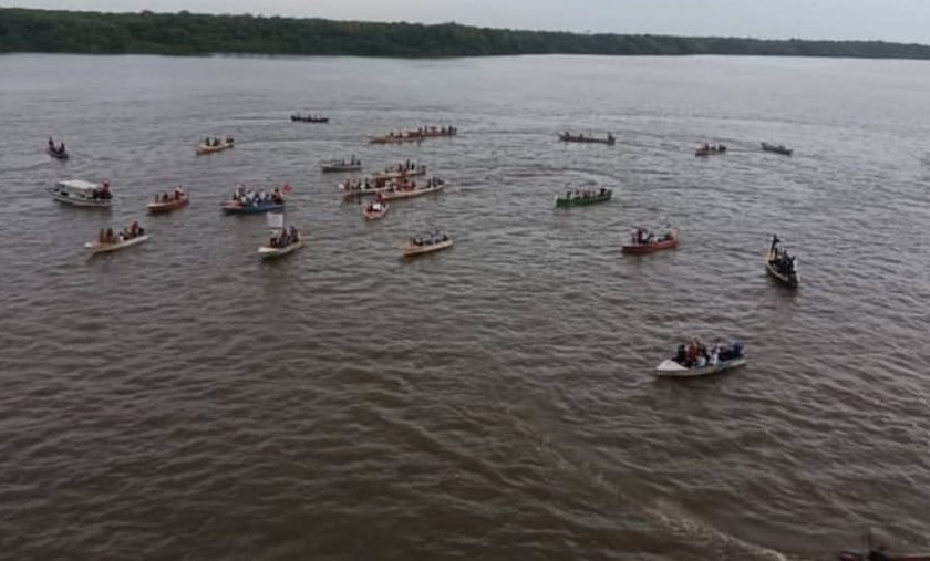 La acción nacionalista y patriota, tuvo la mayoritaria participación de los de líderes indígenas de la subregión, del pueblo pescador, escoltando desde las aguas del río, la nutrida coluna de marcha que minimizó los casi 700 metros del puente que une los municipios Mara y Guajira, al norte del estado Zulia, frontera con Colombia.
