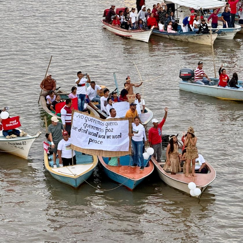 Mujeres, hombres, jóvenes, adultos mayores wayuu y añú, se trasladaron desde sus comunidades, hacia el puente que une los municipios Mara y Guajira, para demostrar ante el mundo, que el pueblo indígena zuliano está en contra del colonialismo, de la agresión del gobierno norteamericano contra el país y firmes en la defensa de la patria venezolana.