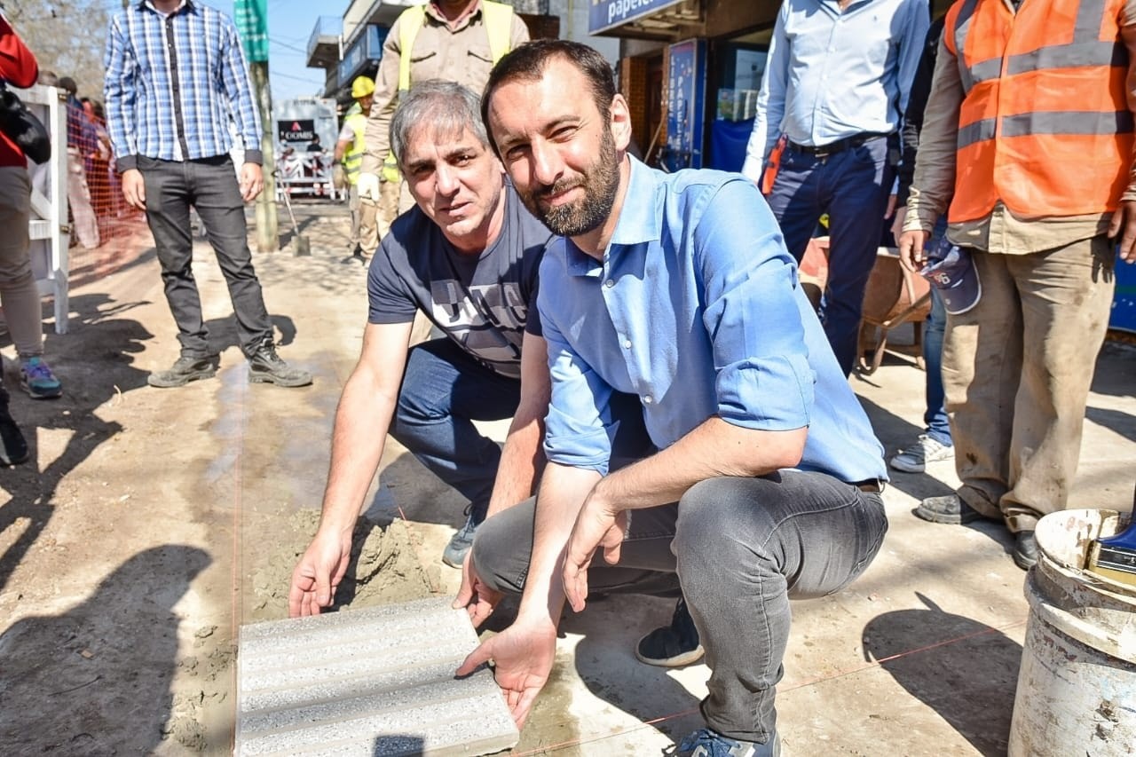 A principios de este mes, «inició la obra del nuevo Corredor Urbano y, hoy, junto a Daniel, vecino y dueño de la librería Estrellita, colocamos la primera baldosa sobre la vereda de Vergara y Felix Frías».