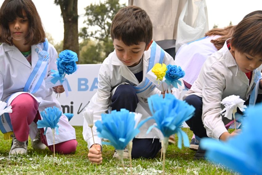 La ceremonia comenzó con el ingreso de la bandera nacional portada por estudiantes. Del encuentro participaron alumnos de las escuelas primarias N° 8, 9, 10, 12, 13, 17 y la Capilla Escuela «La Concepción». Los presentes entonaron el Himno Nacional y autoridades del Gobierno local junto a la comunidad educativa, confeccionaron una bandera de flores celestes y blancas.
