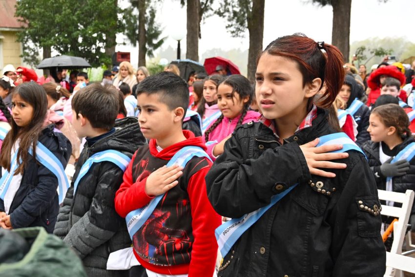 «Hoy es un día muy especial para los niños y niñas, que lo van a recordar durante toda su vida. Tiene que ver, no solo con la promesa de la bandera, sino con un compromiso de fidelidad, con nuestros padres, con el estudio, con un compromiso de amor por nuestra comunidad y con el otro. La bandera representa a una comunidad de personas, cuando somos, somos con el otro», expresó el jefe comunal.