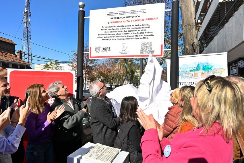 La presidenta del Instituto de Historia de Don Torcuato, Carlota Vallejos, indicó: «Denominamos esta etapa de reconocimientos como ‘Camino al Centenario’. La placa reubicada hoy había sido quitada para preservarla por la construcción de un edificio y estuvo en el lugar desde 1965. El primer poblador de esta tierra fue don Teófilo Arricau, quién llegó en 1906 y además fue el presidente de la primera institución pública de Don Torcuato».