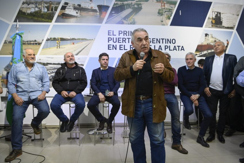 El gobernador de la provincia de Buenos Aires, Axel Kicillof, encabezó este martes el cierre del primer Encuentro Multisectorial sobre Marina Mercante, Industria Naval y Vías Navegables en el municipio de Ensenada. Fue junto al ministro de Trabajo, Walter Correa; el secretario general del Sindicato del Personal de Dragado y Balizamiento, Juan Carlos Schmid; el dirigente Jorge Taiana; el intendente local, Mario Secco; su par de Berisso, Fabián Cagliardi; el diputado nacional Hugo Yasky; y el presidente del Consorcio de Gestión del Puerto La Plata, José María Lojo.