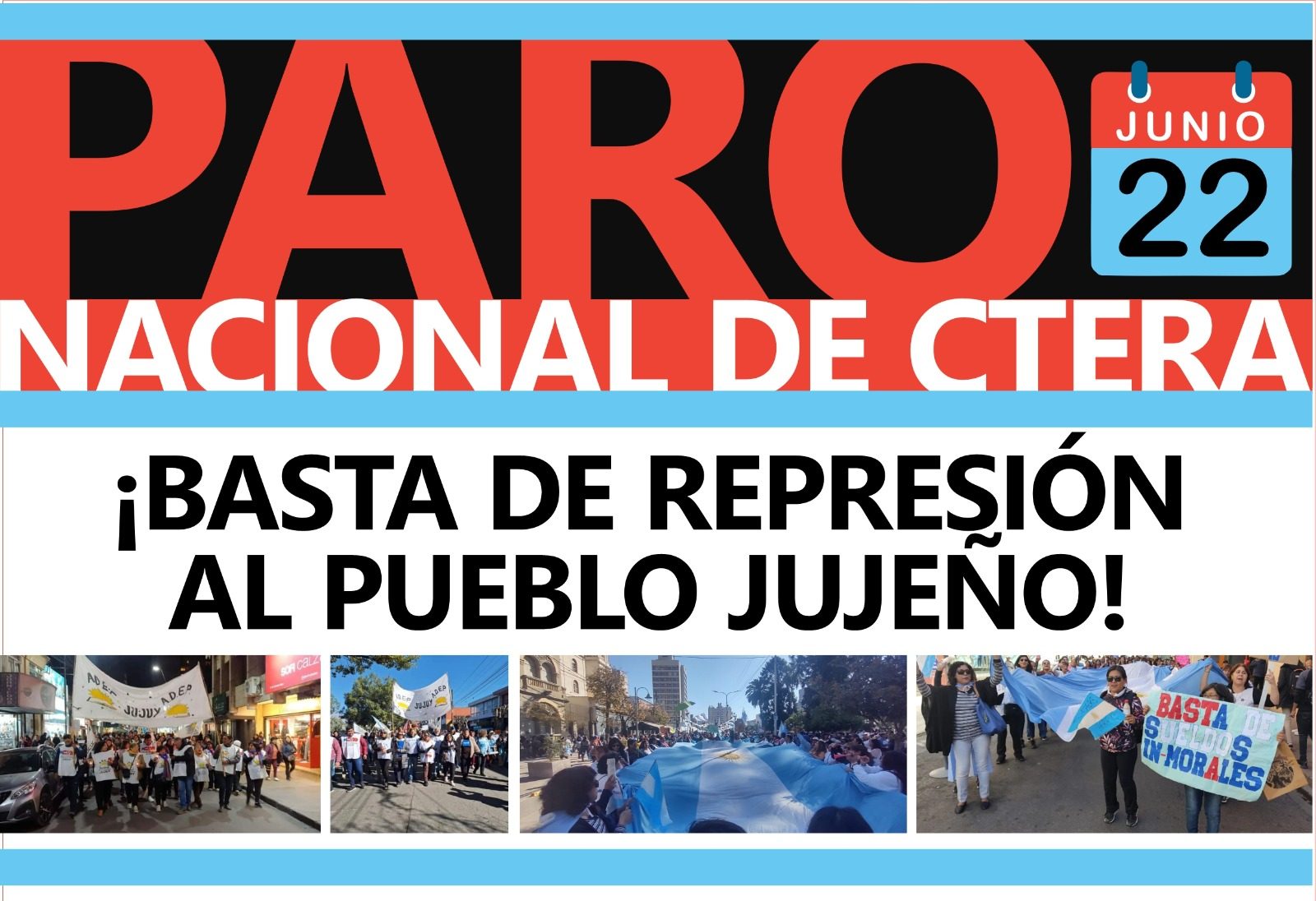 La Confederación de Trabajadores de la Educación de la República Argentina (CTERA) decidió hoy la convocatoria a un paro nacional docente para el jueves 22 de junio, «ante la grave situación que vive la docencia y el pueblo jujeño».