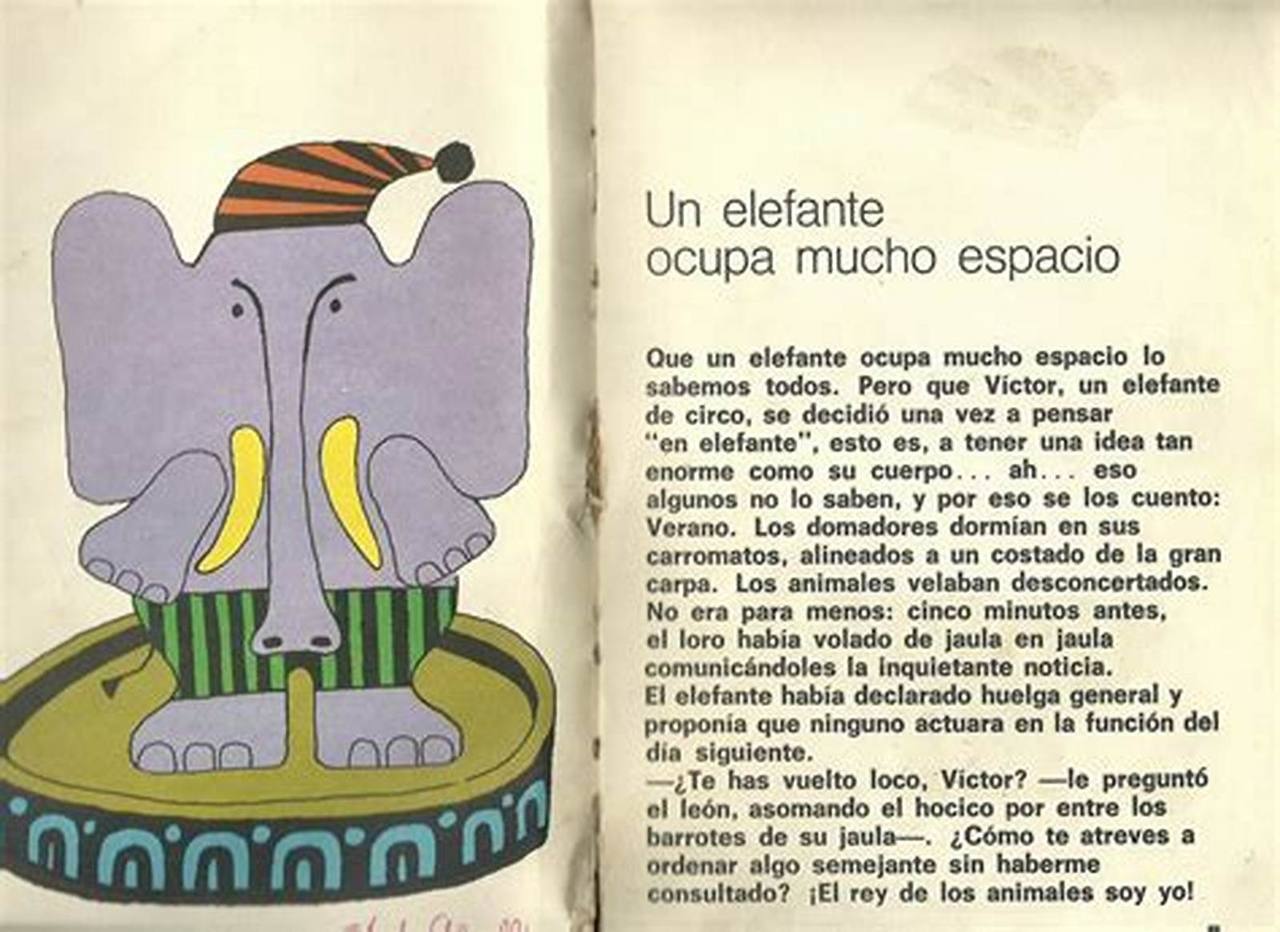 El cuento comienza diciendo: “Que un elefante ocupa mucho espacio lo sabemos todos. Pero que Víctor, un elefante de circo, se decidió una vez a pensar “en elefante”, esto es, a tener una idea tan enorme como su cuerpo…ah…eso algunos no lo saben y por eso se los cuento.” Avanza la historia. El elefante propone al resto declarar huelga general y que, de esa manera, ninguno actuara en la función del día siguiente.
