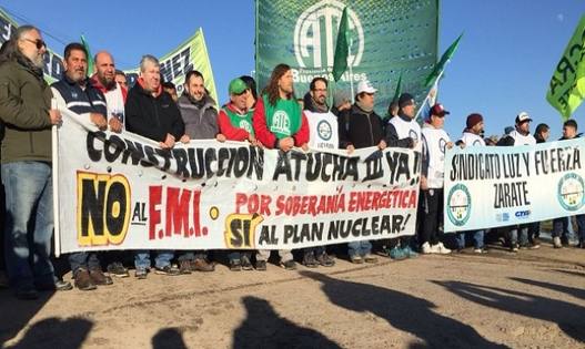 El dirigente denunció que unos “5000 trabajadores han sido despedidos”, tanto de la central nuclear como de seis empresas químicas que cerraron en la región “por las políticas de importación de este gobierno”, así como unos 200 comercios llevados al cierre “a partir de la abrupta baja del consumo”.