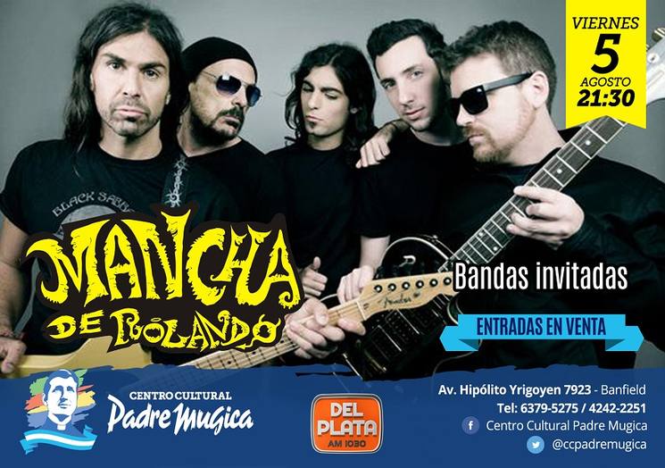 El viernes 5 de agosto La Mancha de Rolando arribará al Centro Cultural Padre Mugica a partir de las 21:30. Las entradas ya se encuentran a la venta. También tocarán tres bandas invitadas.