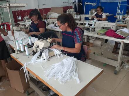 «La demanda nos desbordó, porque las farmacias se quedaron sin stock», agrega Banegas, y amplía: «Toda la parte social, lo que es comedores y escuelas, lo hacemos sin costo, gratis, y hay una parte comercial donde vendemos los barbijos a un costo mínimo de 20 pesos. De esa manera intentamos frenar el precio de mercado, que no siga subiendo, hacemos un contrapeso para abajo para que no se dispare el precio».