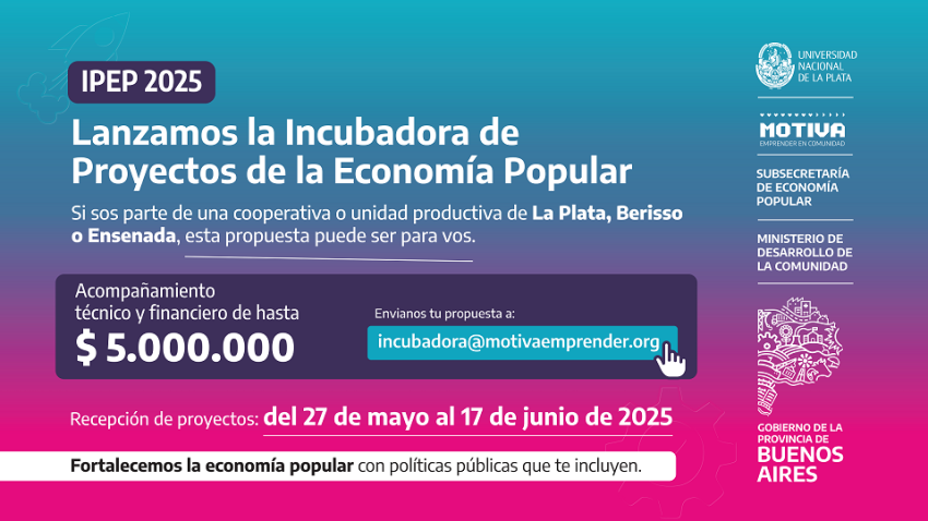 La propuesta está dirigida a unidades productivas, cooperativas y asociaciones civiles que desarrollen sus actividades en los municipios de La Plata, Berisso y Ensenada. Los proyectos seleccionados podrán acceder a un financiamiento de hasta 5 millones de pesos y serán acompañados técnicamente por una mesa conformada por referentes del Estado provincial, universidades, municipios y otras instituciones. La recepción de iniciativas se realizará hasta el 17 de junio.