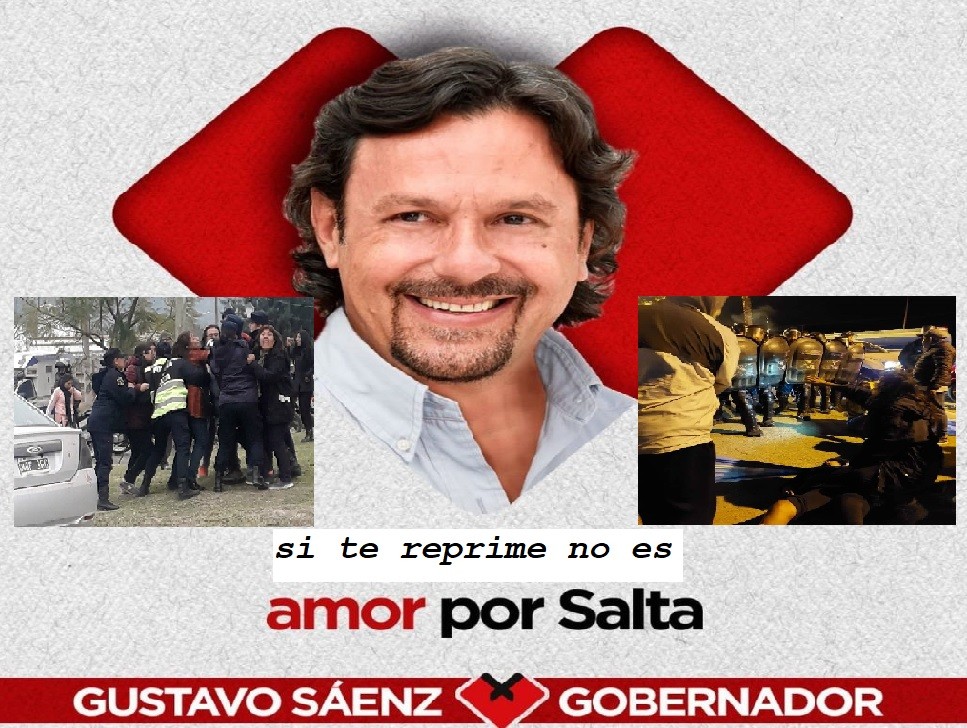 El esquema represivo que desarrolla Sáenz desde el Ejecutivo provincial, involucró a la Policía local que depende del Ministerio de Seguridad -dirigido por el ex juez Marcelo Domínguez- y desde allí procedieron el pasado 25 de mayo, en ocasión del corte en el acceso conocido como peaje ex AUNOR, sobre la ruta nacional 9 en el ingreso a la capital, a realizar un operativo desmedido cuando se retiraban manifestantes en marcha dirigiéndose hacia el centro citadino para continuar con los reclamos salariales y las condiciones de trabajo en EDUCACIÓN y SALUD, los ministerios más grandes en el organigrama oficial.