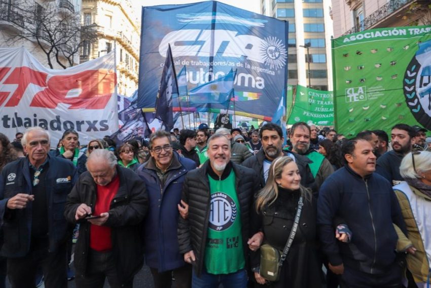 Tras una masiva movilización a Plaza de Mayo en rechazo a la proscripción de la ex presidenta Cristina Fernández de Kirchner, a la que se calcula que asistieron más de un millón de personas durante toda la jornada del miércoles, y de la que no participó la CGT, el Secretario General de ATE Nacional, Rodolfo Aguiar, llamó a reflexionar sobre «los próximos desafíos del movimiento obrero». «¿Por qué no pensar en una Central Única de Trabajadores (CUT)?», se preguntó.