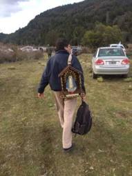 Los participantes de la caminata finalmente emprendieron la misma al alba y arribaron exitosamente a la cabecera del lago a las 15.30 donde se llevó a cabo la entronación de la Virgen de Luján, portada por el cura Francisco Olveira, en representación del Movimiento de Sacerdotes en Opción por los Pobres. En una ceremonia sentida y sencilla se compartió la oración con ofrendas a la tierra y al agua en un ritual por parte de pueblos originarios.