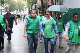 «Todos los que estamos acá manifestándonos entendemos que en octubre tiene que haber un nuevo gobierno, que retome el camino del crecimiento y la generación de trabajo genuino con justicia social. Las políticas económicas no deben someter al hambre a los trabajadores y sustentarse en el endeudamiento y la fuga los recursos del país», manifestó el secretario General de la FEDUN, Daniel Ricci.